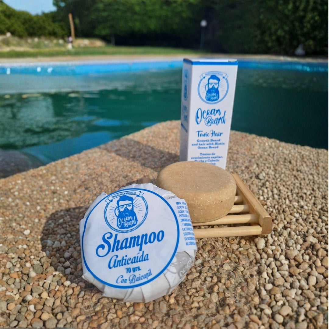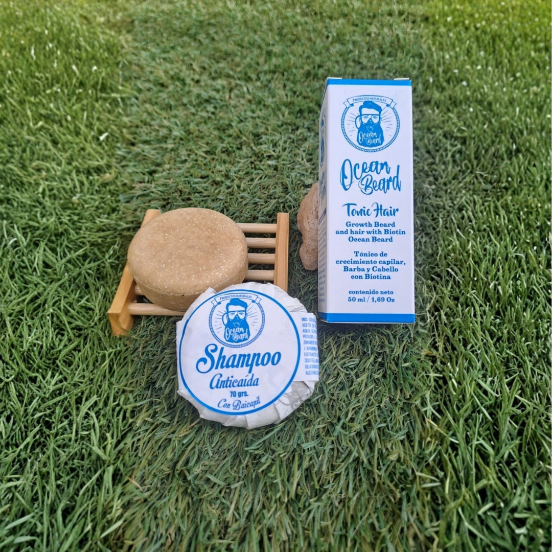 Pack Crecimiento Sin Plástico: Tónico Crecimiento Barba & Cabello + Shampoo Sólido Anticaída + Jabonera de Madera